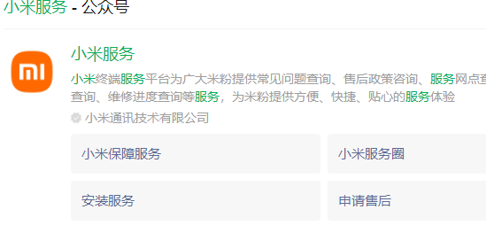 1、可以在微信公众号里搜索‘小米服务’然后关注打开。