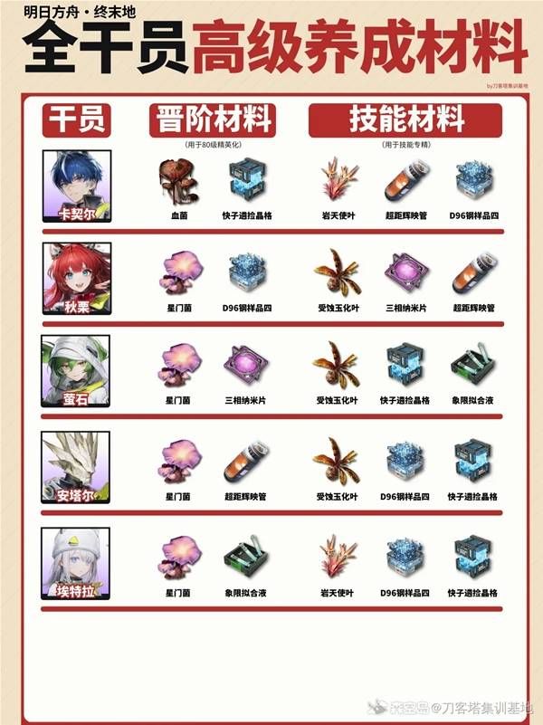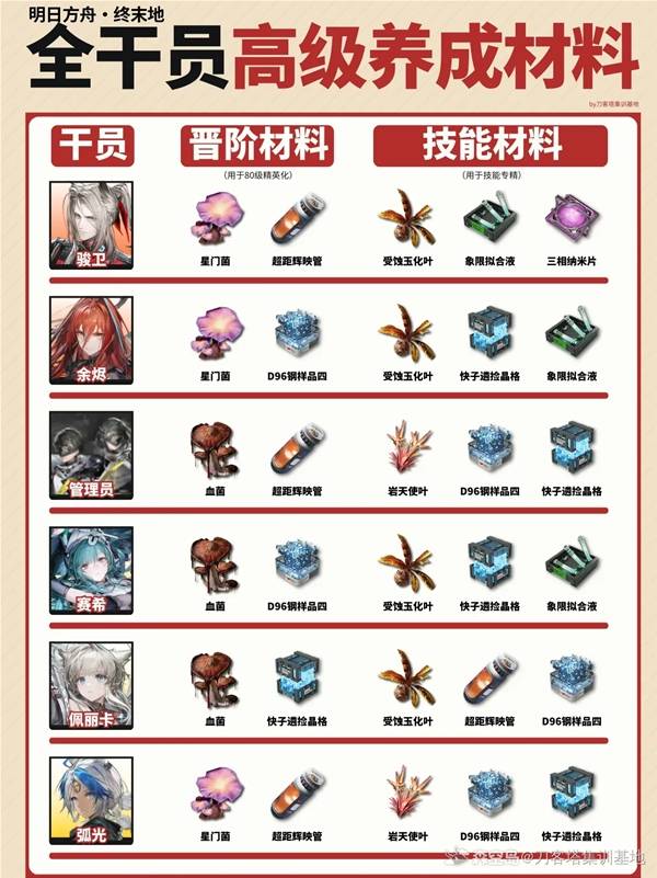 - 明日方舟终末地全干员高级材料需求表一览 04-15