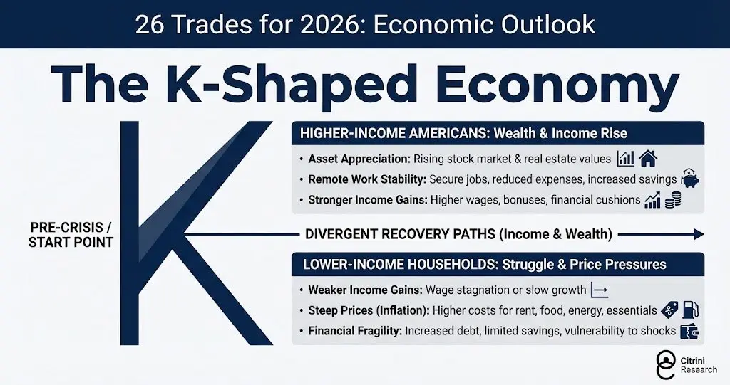 资产增值:股市和房地产价值上涨。远程办公稳定性:工作稳定、支出减少、储蓄增加。收入增长更强劲:工资、奖金和财务缓冲增加。低收入家庭:生活拮据,面临物价压力: