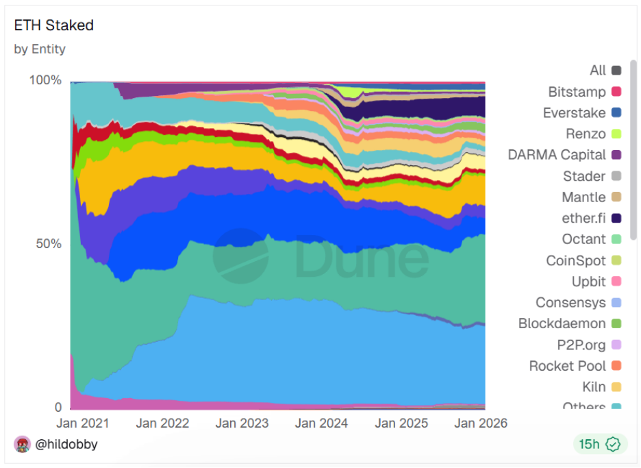 此刻的以太坊,或许正处在“堰塞湖”时刻。上游是原生DVT、Fusaka升级等技术红利与深厚的资产沉淀,下游则是中心化隐忧、价值捕获失灵与错配的市场定价。