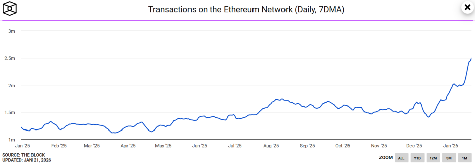 随着Fusaka升级大幅降低交易费用,粉尘攻击等这类低成本攻击具备可行性。这表明,以太坊创纪录的交易量或被垃圾交易夸大,削弱了需求增强的可信度,导致市场未将其视为ETH价格上涨的催化剂。