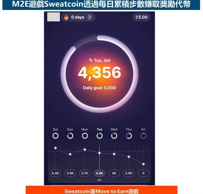 代表作像是《StepN》,要先购买NFT鞋子,然后透过跑步、走路来获得代币,在2022年曾引发一波M2E的运动热潮,目前则是有《Sweatcoin》、《SuperWalk》之类的新游戏推出。