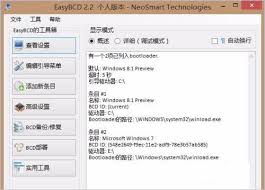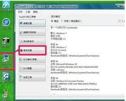 进入easybcd界面后,你会看到多个选项。如果你的电脑之前安装过多个操作系统,这里会显示已安装的系统列表。