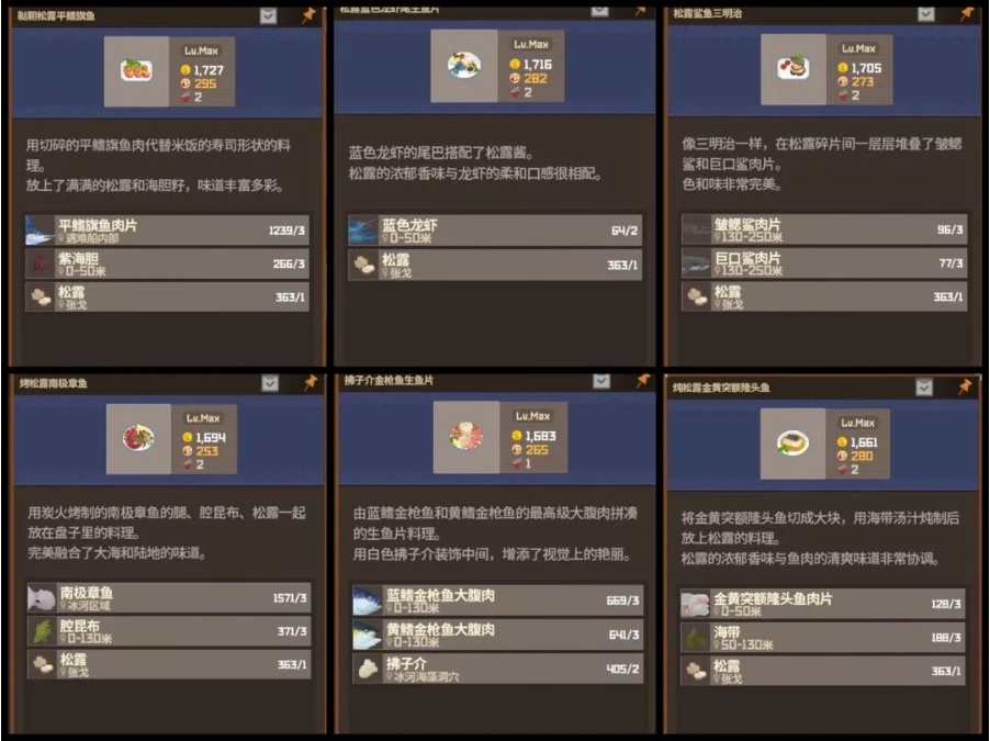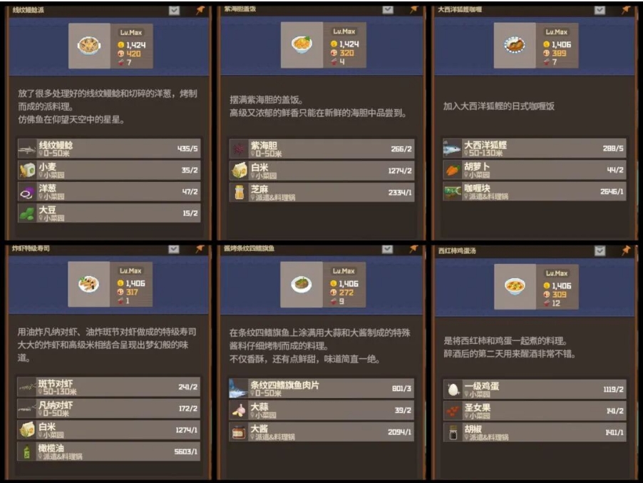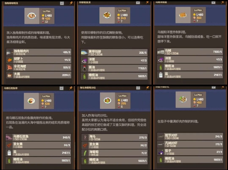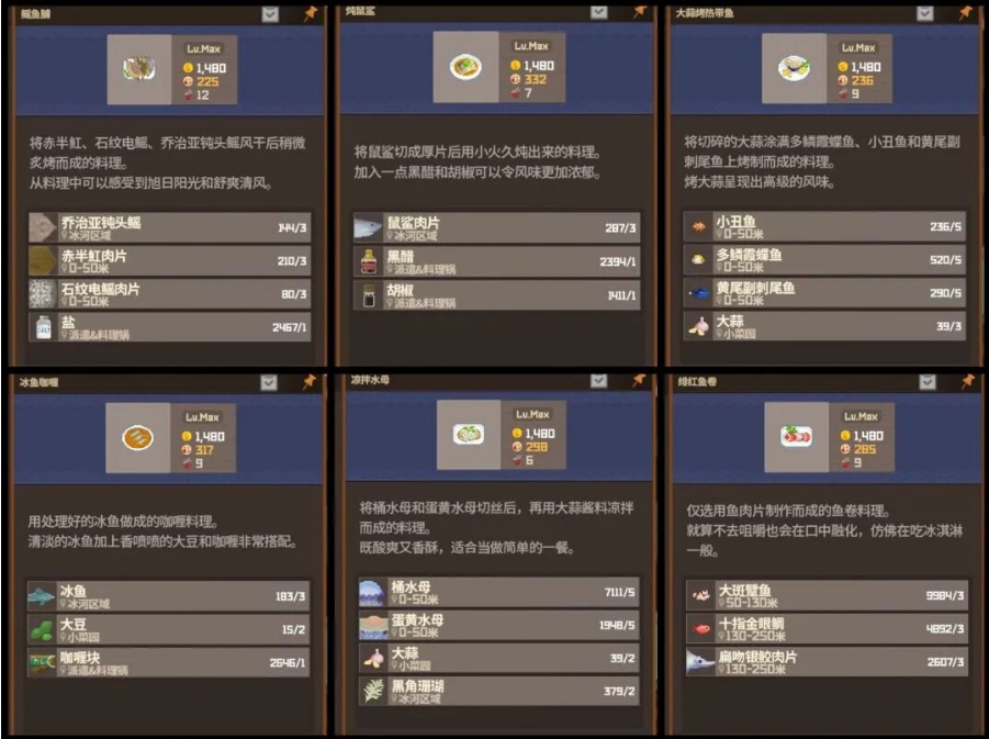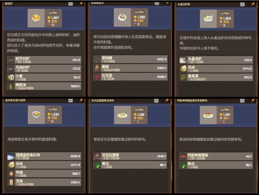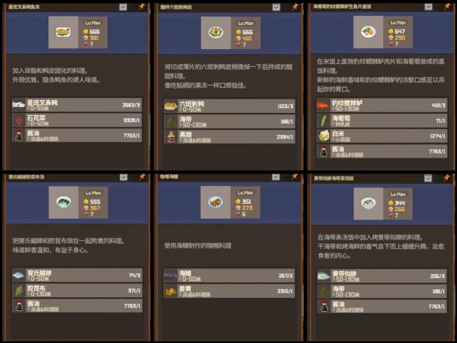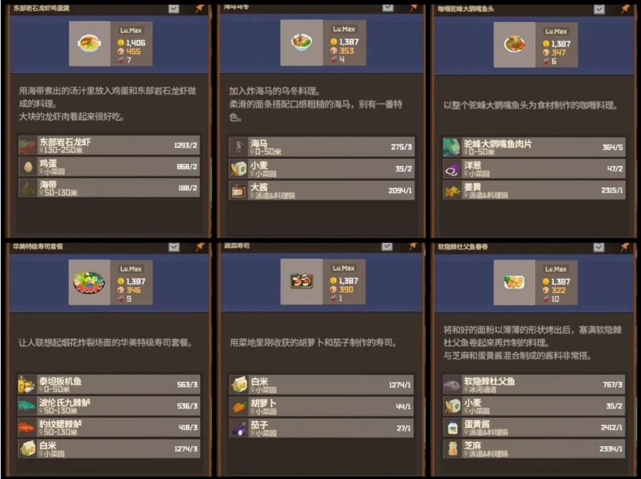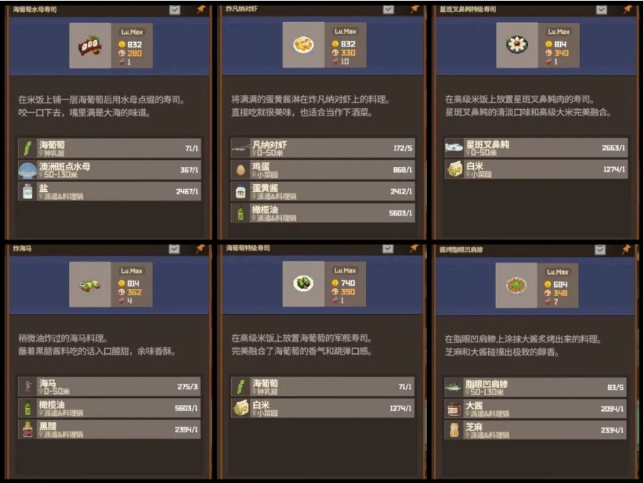潜水员戴夫游戏里的食谱是寿司店经营的核心,直接决定赚钱效率、店铺星级、客人满意度,玩家把获取的食谱处理,然后制作出各种美食满足客人的需求,以下是游戏的食谱大全分享。