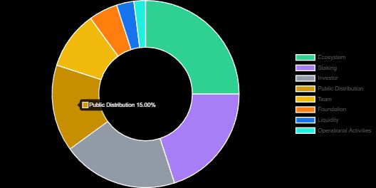 生态系统(Ecosystem):25%节点质押(Staking):20%投资者(Investors):20%公开分配(Public Distribution):15%团队(Team):10%基金会(Foundation):5%流动性(Liquidity):3%营运与活动(Operational Events):2%释放与锁仓规则: