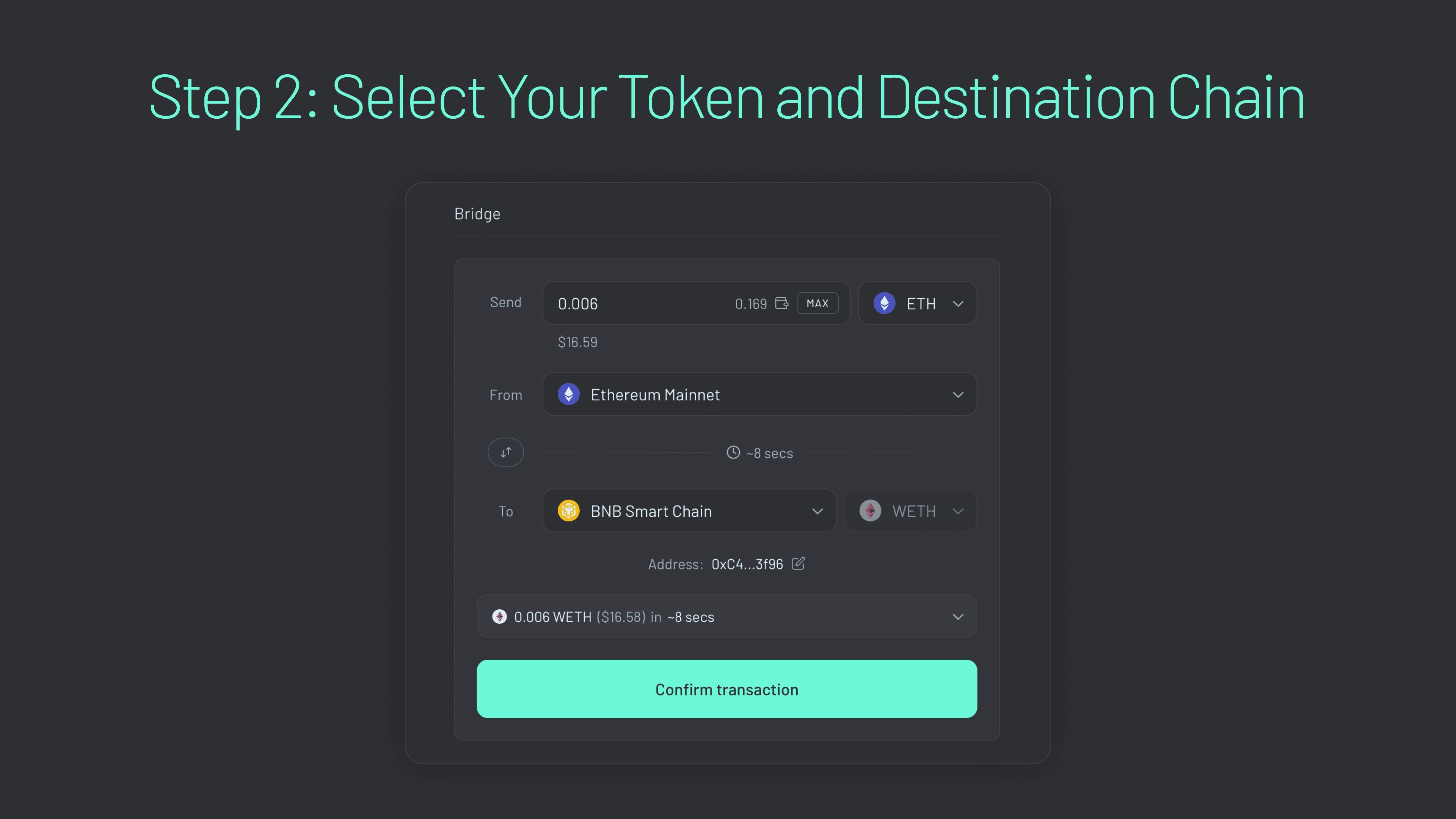 步骤 2:选择你的 token 和目标链。