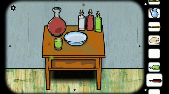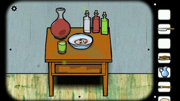 1、分别打开左右两个柜子,获得酒(深红色)、刀