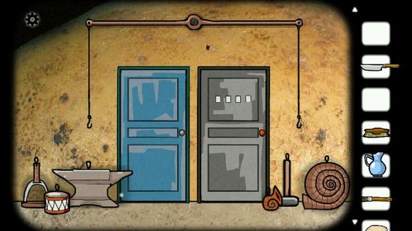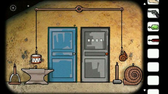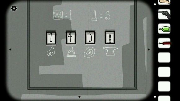 根椐门上的提示,用天平称出道具代表的数字,得到密码:1458