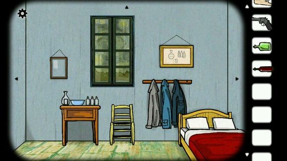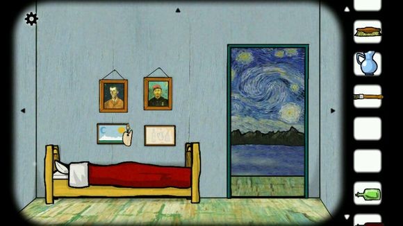 这时候有人在敲门,开门后发现是梵高的好朋友保罗,交谈后用帽子换到保罗手上的调色板