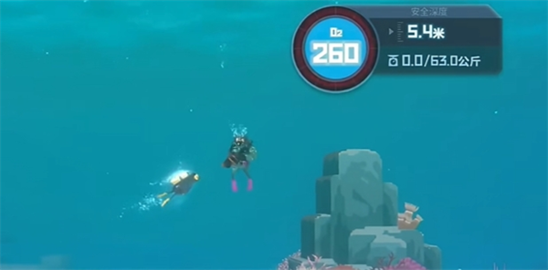 4、等炮弹变慢,往炮弹的方向游,停留在棒球棍的有效攻击范围内开始蓄力。蓄力结束就是戴夫的全身开始发彩光,这个时候松开棒球棍打中炮弹就可以。