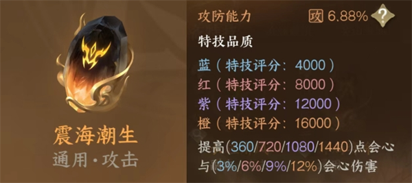 dps:会心没达到25000选择震海,超过可以选择独伫千锋,拆塔选择震海