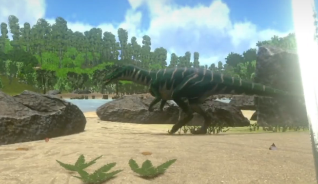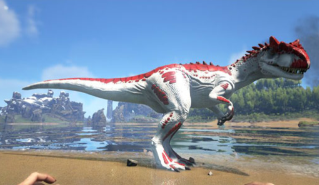 异特龙(Allosaurus)为中型陆地掠食者,以高移速与集群行为著称。野外常以3–7只为单位游荡,其中带有发光标识的个体为群体首领。外观多呈红白双色涂装,辨识度极高。击杀后固定产出兽皮、大腿肉与角质。驯服方式灵活:既可用麻醉箭实施控制,亦可投喂黑色浆果或生物毒素降低其抗性。建议优先引离单体目标,再逐个处理,避免陷入围攻风险。