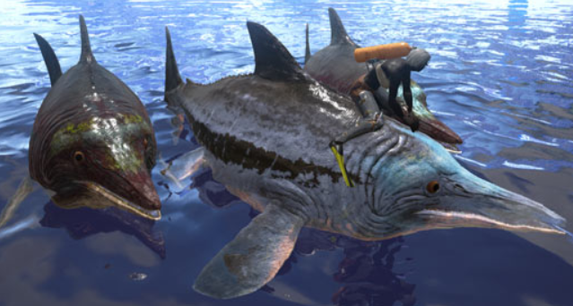 鱼龙(Ichthyosaur)属海洋爬行动物,外形高度趋同海豚,是深海探索不可或缺的载具。其驯服机制区别于多数生物——支持和平驯服模式,无需击晕。核心饲料包括优质生肉、熟肉及渡渡鸟蛋。需注意:喂食后目标常迅速游离,玩家须及时追进并持续补给;同时警惕同水域潜伏的鲨类威胁,确保驯服过程安全可控。