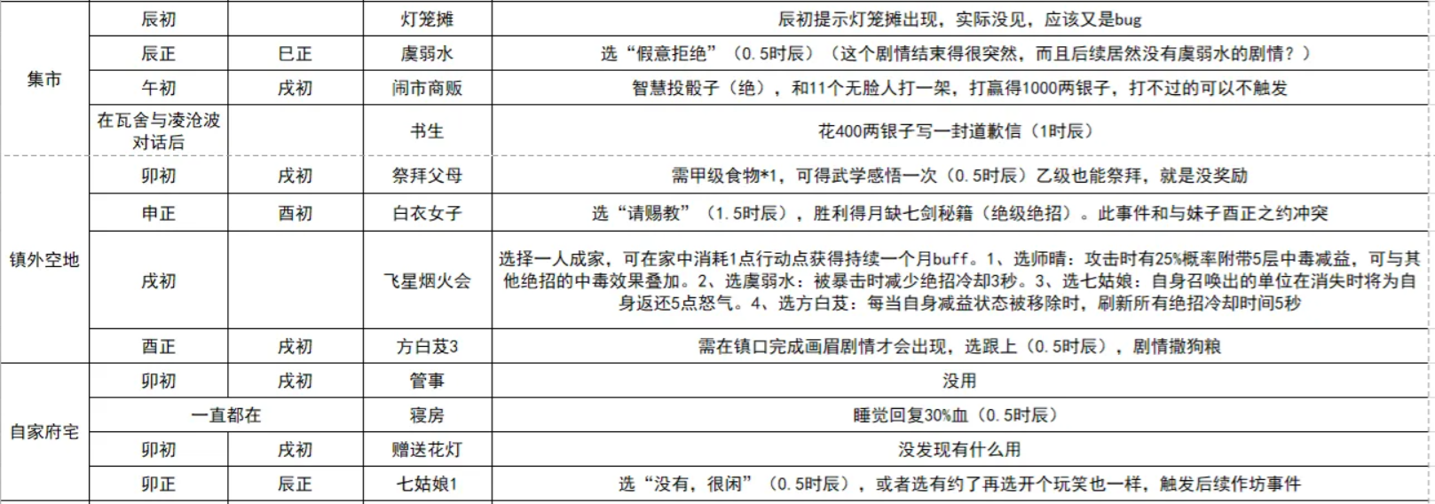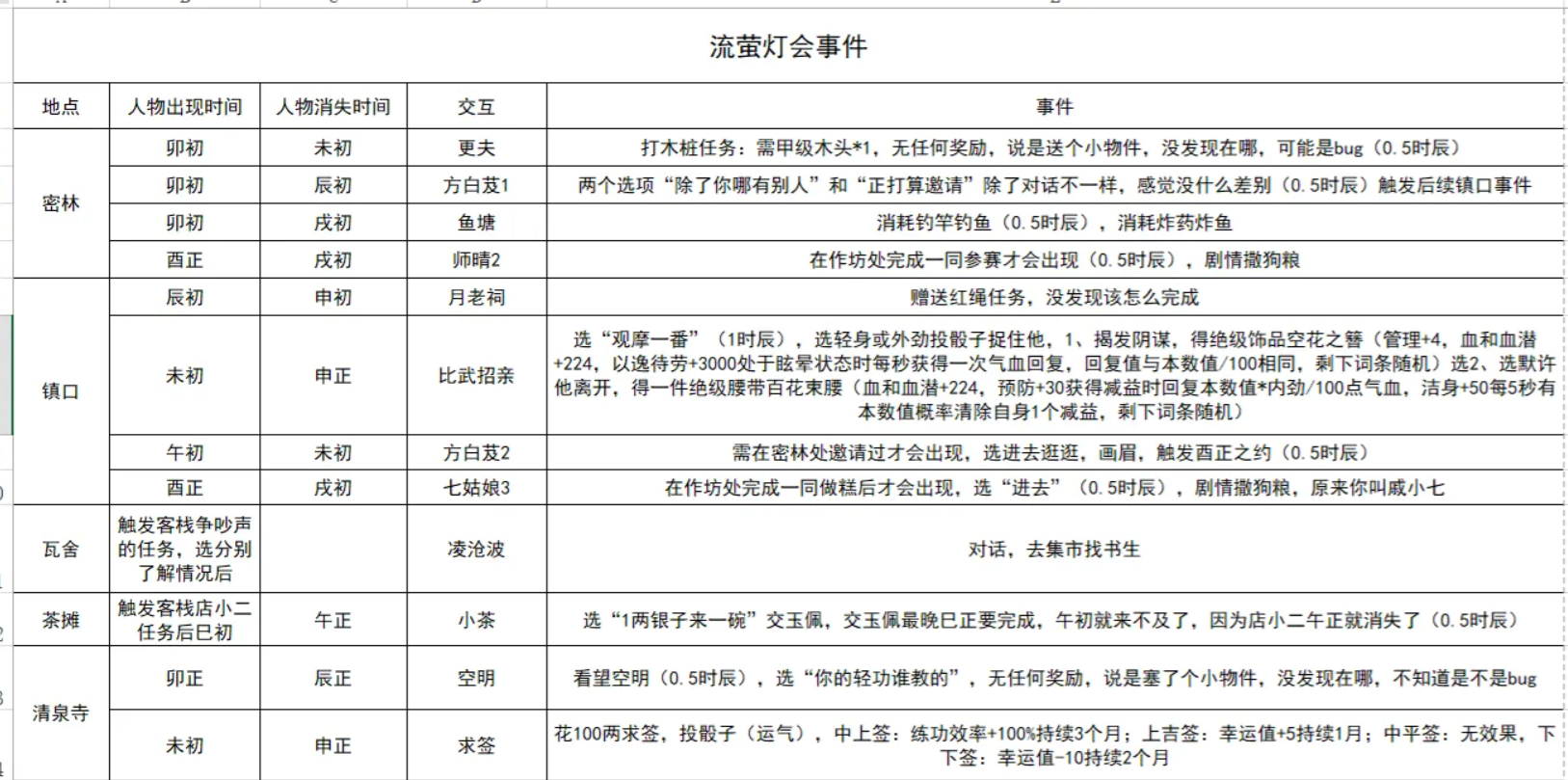 模拟江湖流萤灯会事件表分享