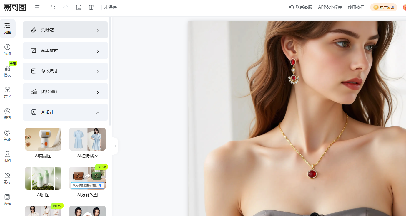 易可图区别于传统PS软件的最大优势在于AI驱动的高效操作: