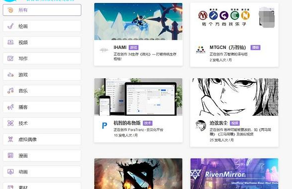 2、登录后可浏览平台各领域优质创作者及其作品