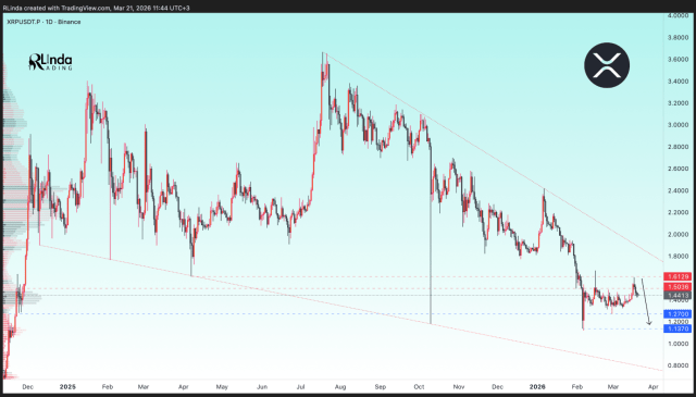 尽管Ripple近期取得了一系列积极进展,但XRP价格在此期间并未出现实质性复苏。鉴于比特币持续承压、山寨币普遍受挫的现状,这一现象并不令人意外。即便周末过后,XRP的下跌趋势似乎仍未见底。关键支撑位已被击穿,最新市场动向正威胁着这个山寨币。