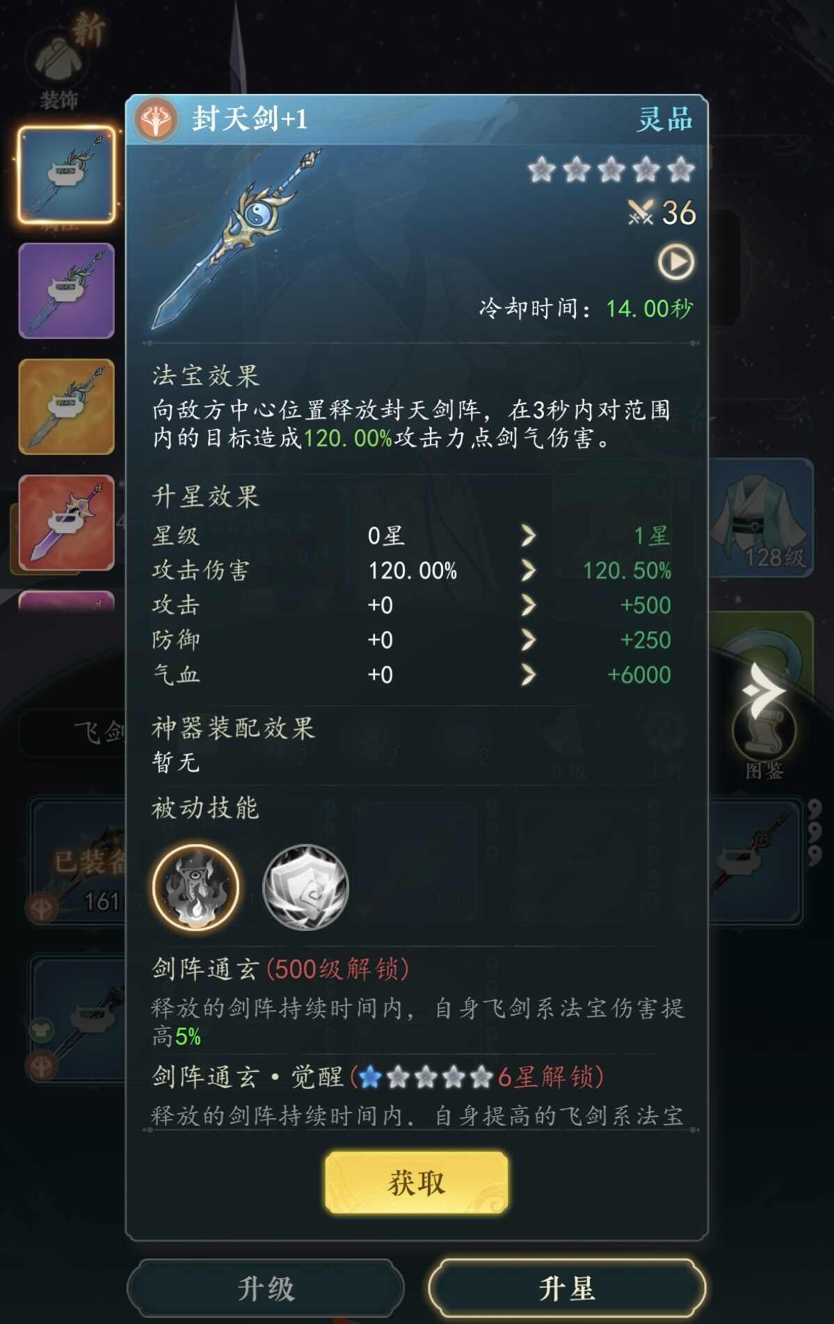 纯飞剑六件套推荐配置为:封天剑、诛仙剑、青云剑、绝仙剑、戮仙剑、天罡剑。各法宝特性如下——诛仙剑具备突进+三段挥砍能力,触发高额剑气伤害;绝仙剑可发射多道仙剑进行范围打击;封天剑在敌方中心生成持续3秒的剑阵,期间不仅造成持续AOE,还提升自身所有飞剑法宝的伤害;戮仙剑幻化三柄飞剑直线突袭,附带击退效果及剑意叠加。整套搭配以极致输出为核心,适用于追求速通与极限伤害的场景,但缺乏控制、减益或生存向功能。