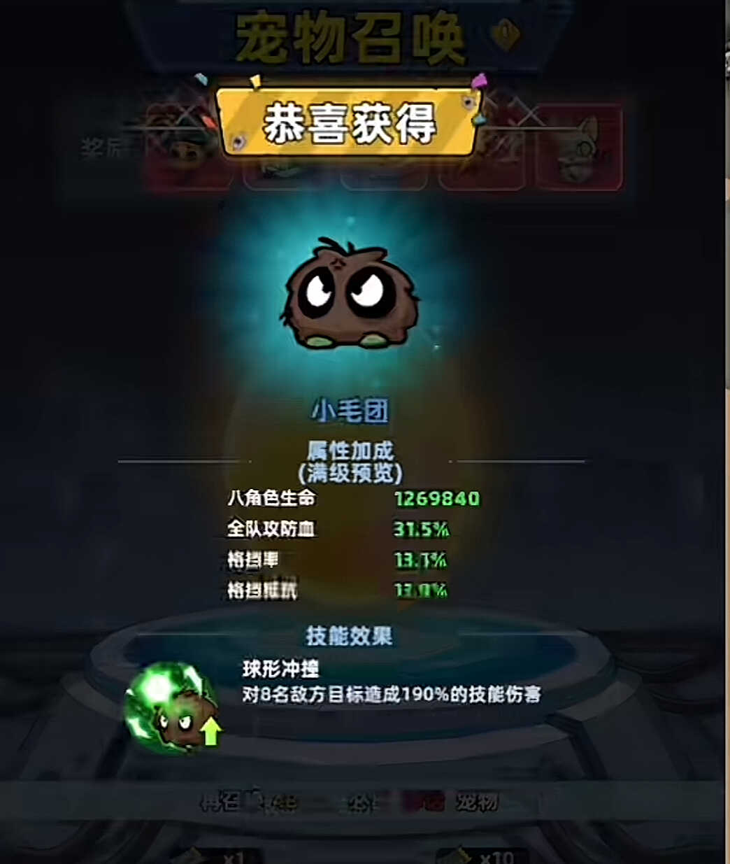 宠物系统于服务器开启后第72小时正式开放。获取途径为宠物召唤界面,包含单次免费召唤与十连召唤两种模式。每次召唤结果随机生成,宠物品级涵盖普通、稀有、史诗、传说及神话五个层级。每位玩家每日可享一次基础免费召唤机会,并可通过观看激励视频额外获得一次召唤资格。若希望提升神话级宠物抽取概率,可开通终生卡服务,该权益将使神话级保底触发率提升10个百分点。