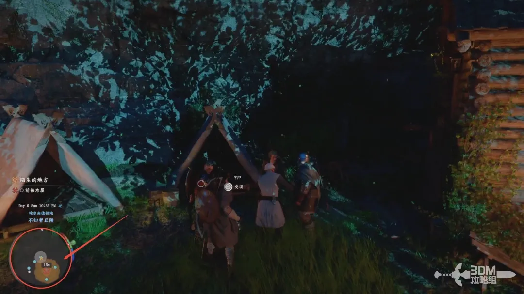 营地外对话结束后,进入小屋自动触发剧情,按住X可以加快游戏播片的速度。