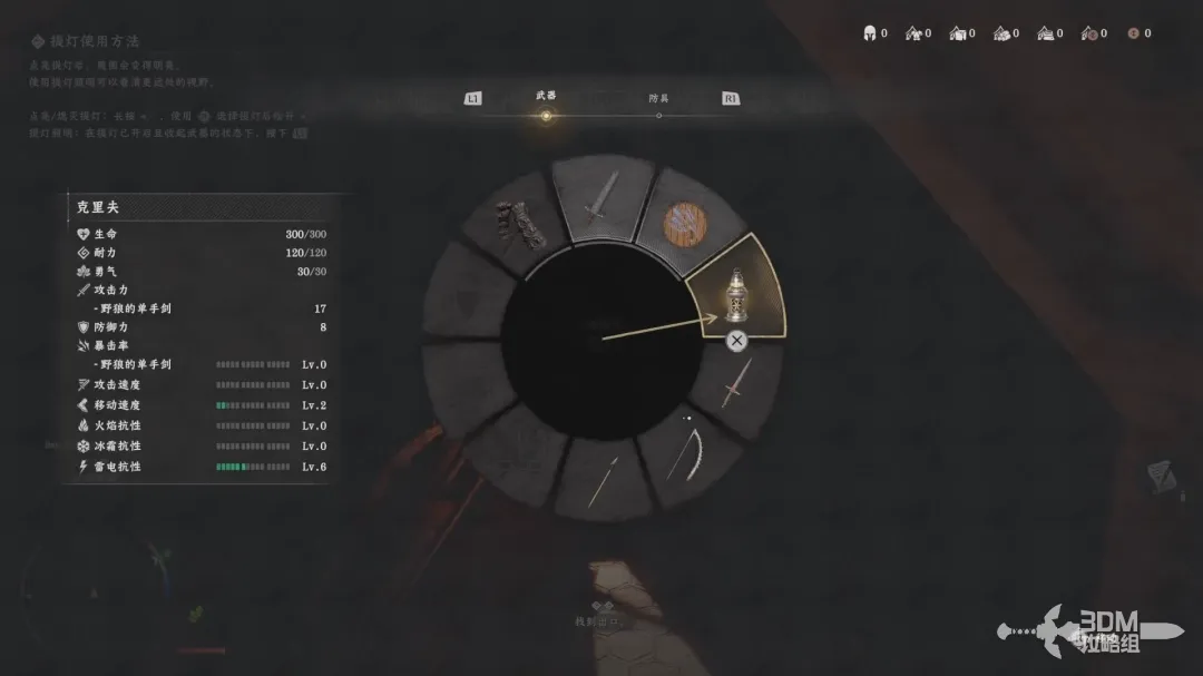 长按十字键左键,然后用右摇杆控制光标选择提灯道具,按下X键打开子菜单;
