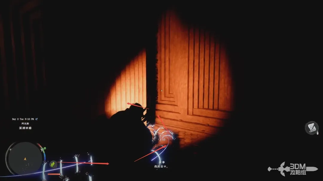 举起提灯还可以看到地上的线路,沿着光亮往前走找到出口。