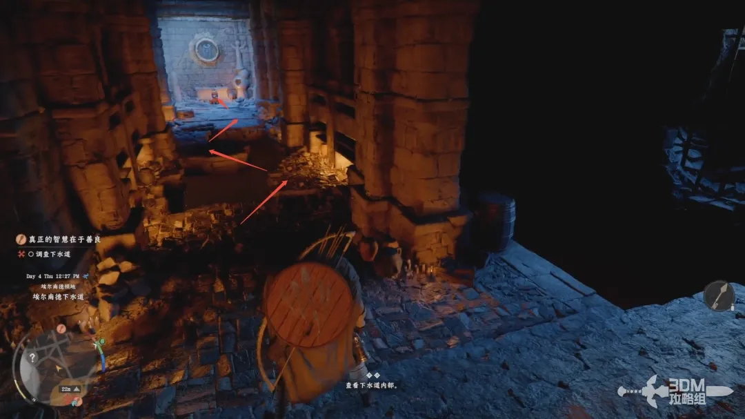 进入下水道,往前走,然后前面的地面会坍塌,从两边来回跳过去。