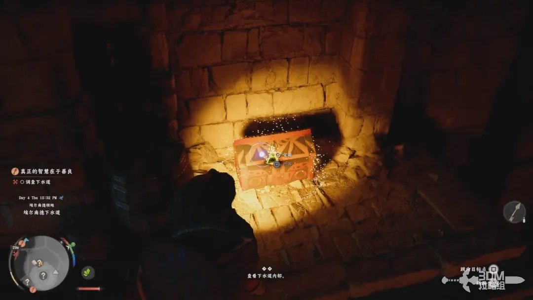 下水道左边岔路上有个隐藏的箱子。