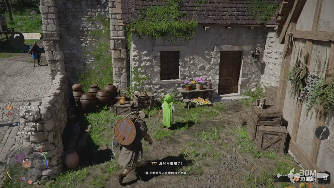 对话会触发一段剧情,剧情结束后任务进入下一阶段,左侧小地图上显示当前任务的满足条件,待办事项;