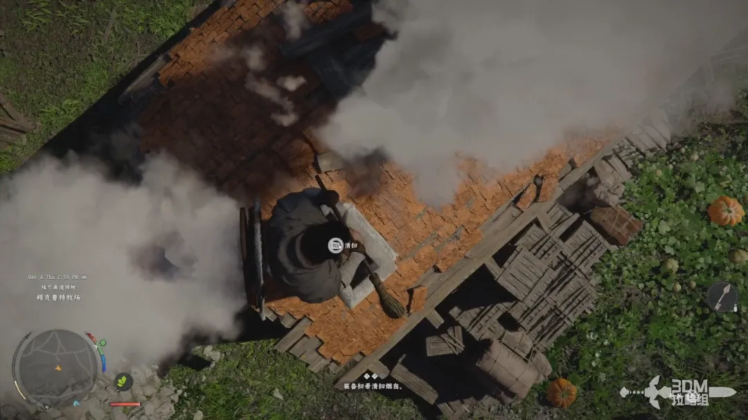 靠近任务所示房子,然后进入剧情,剧情结束后,需要帮助屋主打扫房屋的烟囱。