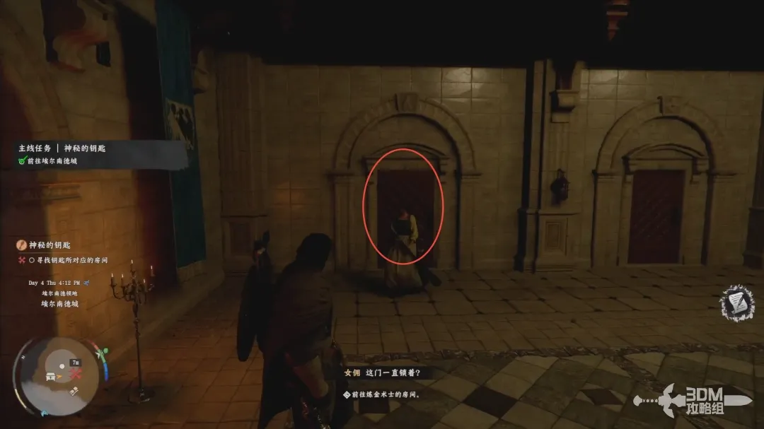 和被绑住的贵族互动,帮她解开绳索,然后获得一封信件。