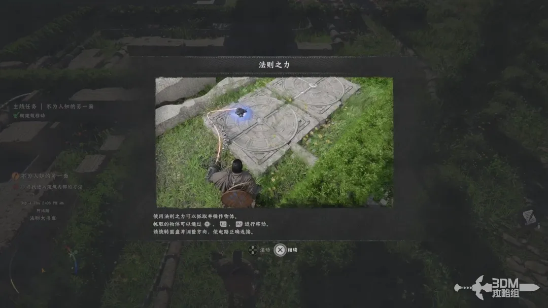 长按L3(左摇杆)可以释放一个钩锁,然后按用右摇杆和L2(左扳机),R2(右扳机)来拖动石板;