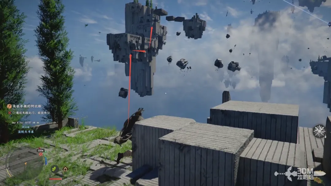 长按左摇杆使用钩爪功能,抓取悬浮在空中的石头,然后慢慢的拖拽。