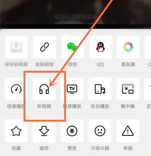 在更多功能页面,点击“听视频”图标。