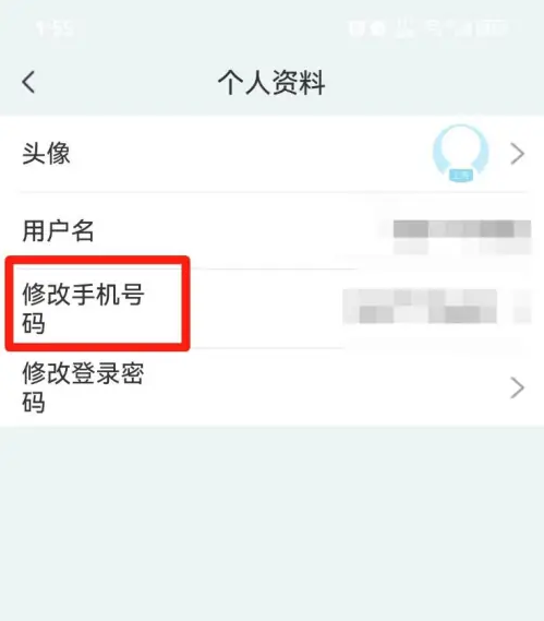 在新的页面点击【更换手机号码】