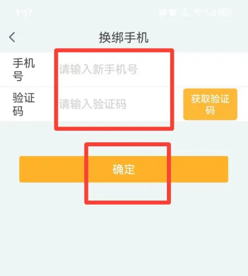 最后输入新手机号码和验证码,点击【确定】即可