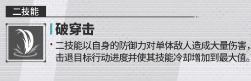 二技能“破穿击”为高爆发单体斩击,专精于打击已处于防御下降状态的目标,基础伤害高达480%防御值。该技能附带100%概率的击退效果,并使赫同立即获得100%行动进度,大幅提升技能循环节奏。尽管冷却时间为4回合,但其稳定可控的位移与行动加速机制,使其成为衔接连招、抢占先手的关键技能。