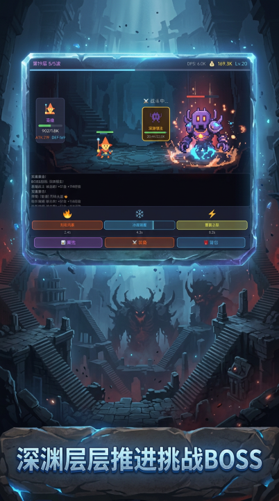 装备系统深度绑定10000层进程:每件装备可独立强化至满阶,词条池覆盖攻击、暴击、元素增伤、抗性穿透等数十类属性,支持自由重铸与定向洗练。随着层数提升,深渊BOSS逐步解锁高阶机制,配合元素技能链式触发(如火+冰→冻结+碎裂伤害),形成高自由度的Build构筑空间。