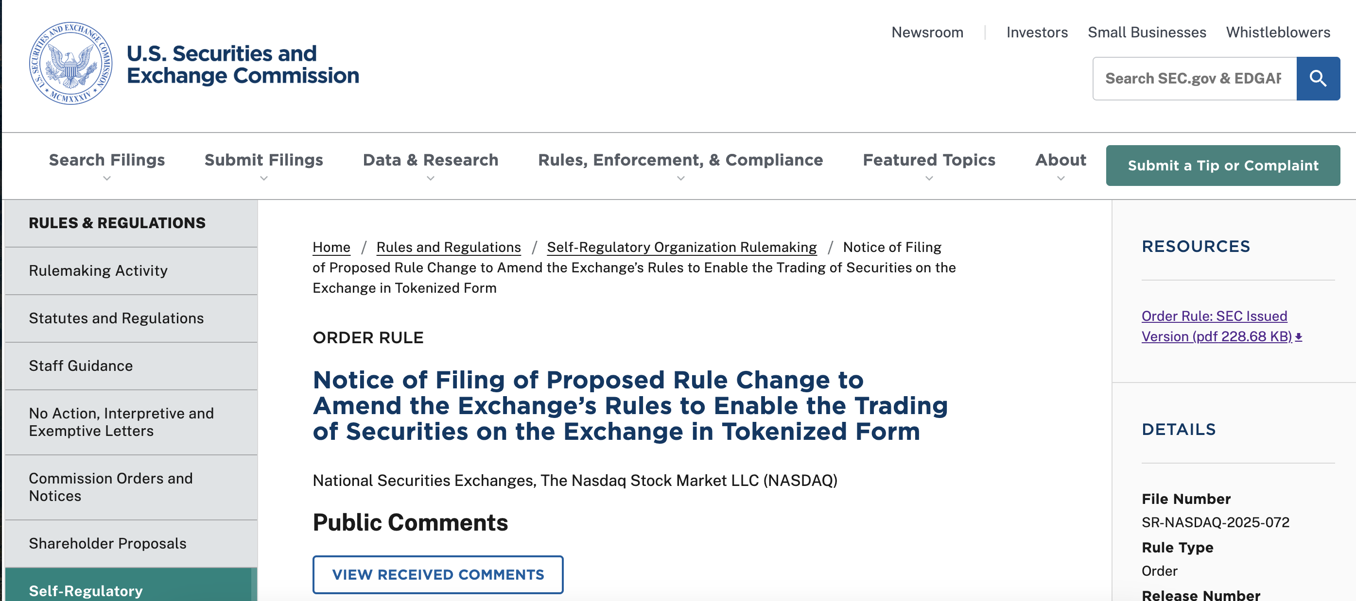 华尔街加速上链:纳斯达克获批代币化试点,标普500首次官方入场