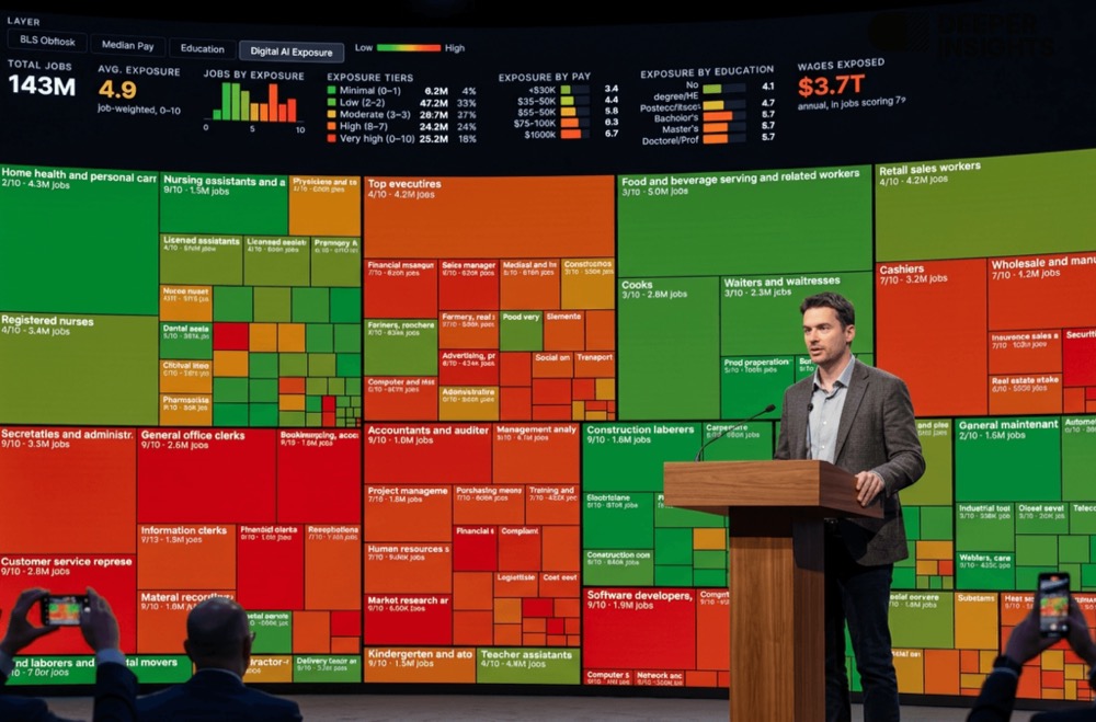 恐慌情绪更在全球蔓延。从《2028全球智能危机》中“AI取代人类”的末日叙事,到AI大神Karpathy发布的“AI职业风险图”刷屏全网,这股不安正迅速席卷全球。