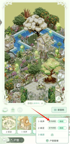 3、点击右下方的户型管理将你喜欢的户型设置成家园