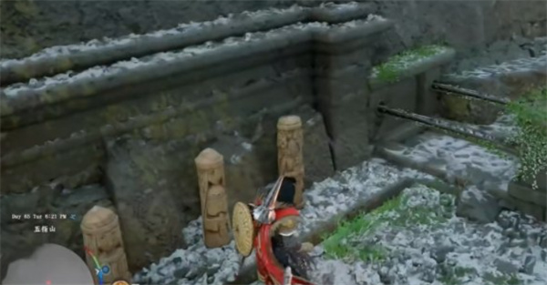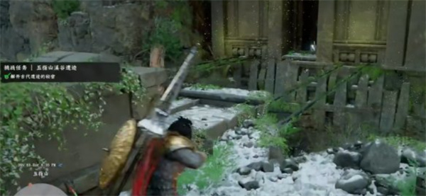 抵达五指山溪谷遗迹,找到三个石像与三个可移动推车,用劲法/法则之力推动,站上车后对面石门自动打开。