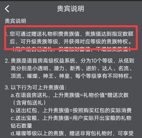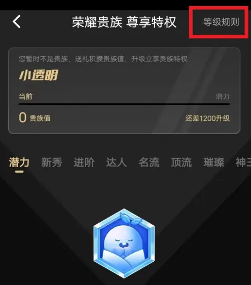 贵族页面,选择查看右上角等级规则。