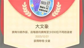 当你在小镇的文学领域持续活跃,积极参与各项文学活动,不断提升自己的文学素养和创作能力,并且在小镇居民中树立起良好的文学形象时,就有很大机会获得隐藏成就大文豪。这个过程需要耐心和坚持,只要你全身心投入到小镇的文学世界中,相信大文豪的成就终将属于你。