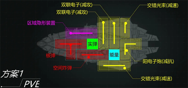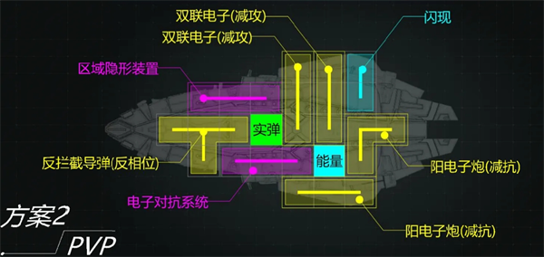 这套是pvp用的,玩家一般都大船为主,所以去掉了减速炮换成减抗炮。另外增加了一个反相位导弹,这玩意能直接给人逼出隐身状态,十分强劲。