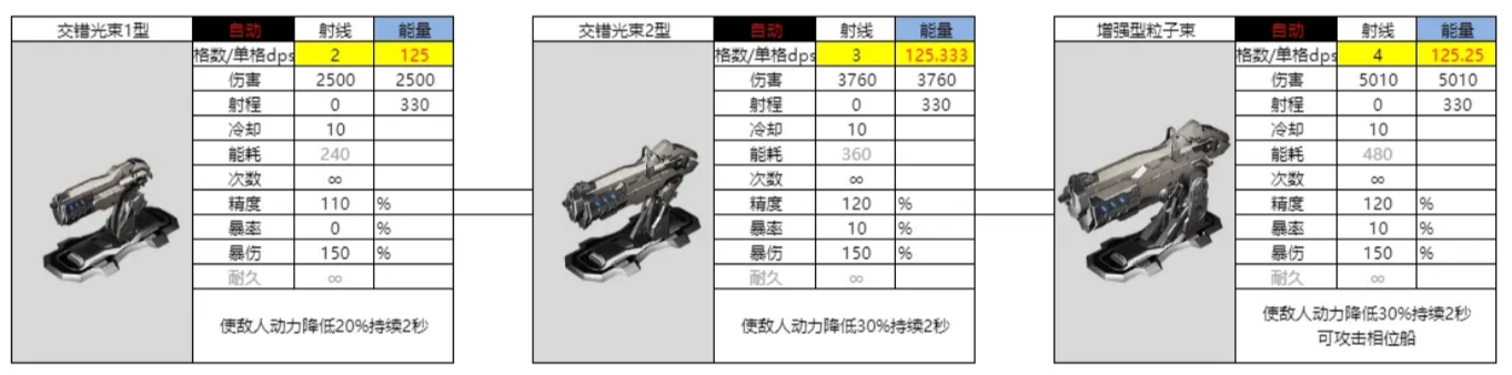 单格秒伤125。一阶使敌人动力降低20%持续2秒,二阶提升至30%,三阶可攻击相位船