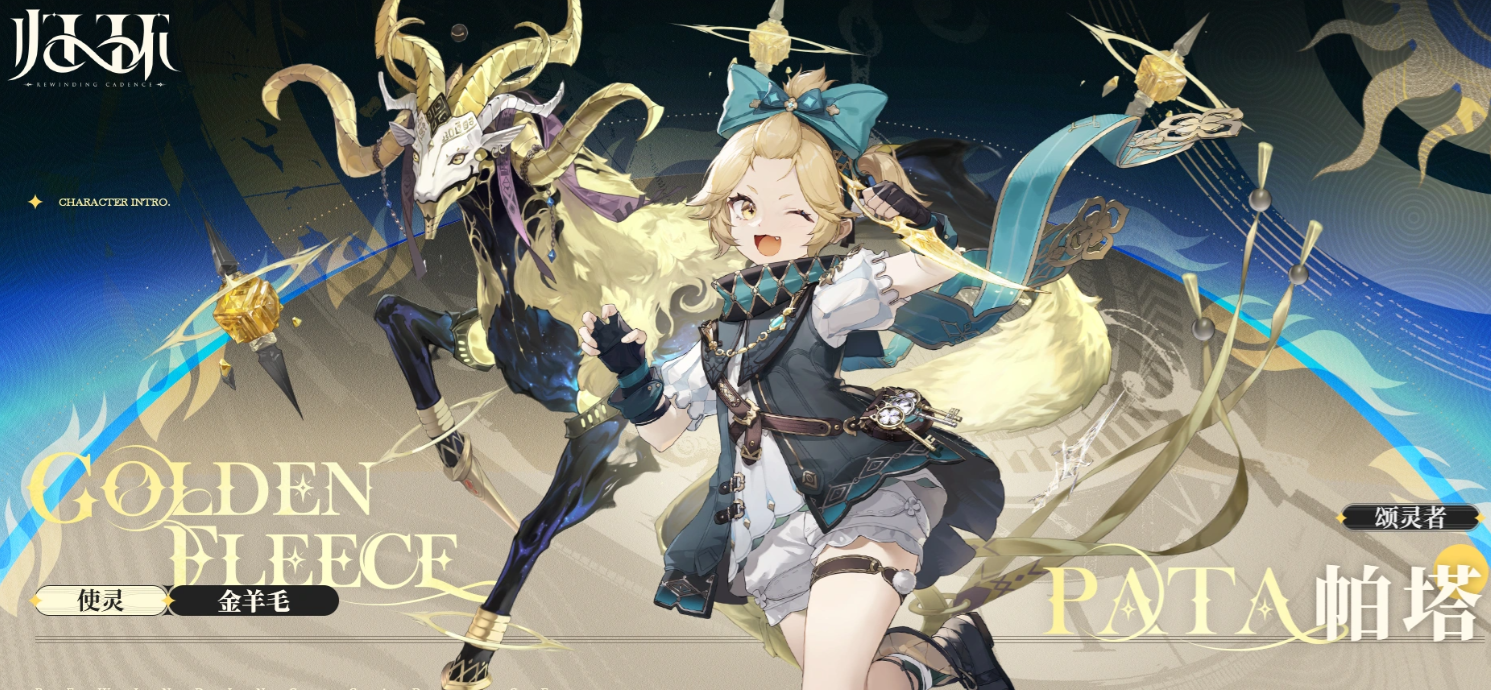 岩属性角色。猎宝团现任t长,常年活跃于遗迹与秘境之间。虽以寻宝为业,但真正所求并非财富本身,而是探索过程中的未知与真相。契约灵体为金羊毛——由人类对宝藏与丰饶的集体执念孕育而成。其头角由纯金铸就,现由猎宝团副t长兼第二位成员代为执掌。