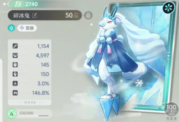 碎冰兔隶属幻想系,主修魔法输出。其攻击动作伴随高亮度蓝光特效,兼具视觉表现力与实战干扰能力。该精灵存在三阶成长结构:初始形态为雪容仔,分布于寒晶铃区域;该地点每六小时刷新一次遭遇事件,但需先通过战斗将其血量压制至较低水平方可提升捕获成功率。当等级达到20级时触发首次进化,升至40级后可完成最终形态蜕变。此外,玩家亦可通过神秘彩蛋途径获取,但孵化结果为随机分配,不保证必得碎冰兔。