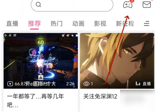 第一步需要登录哔哩哔哩官网,在页面右上方找到游戏中心入口标识。