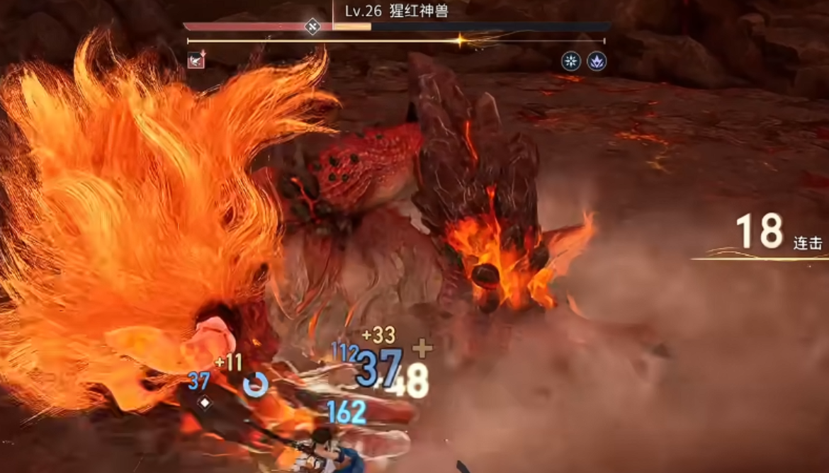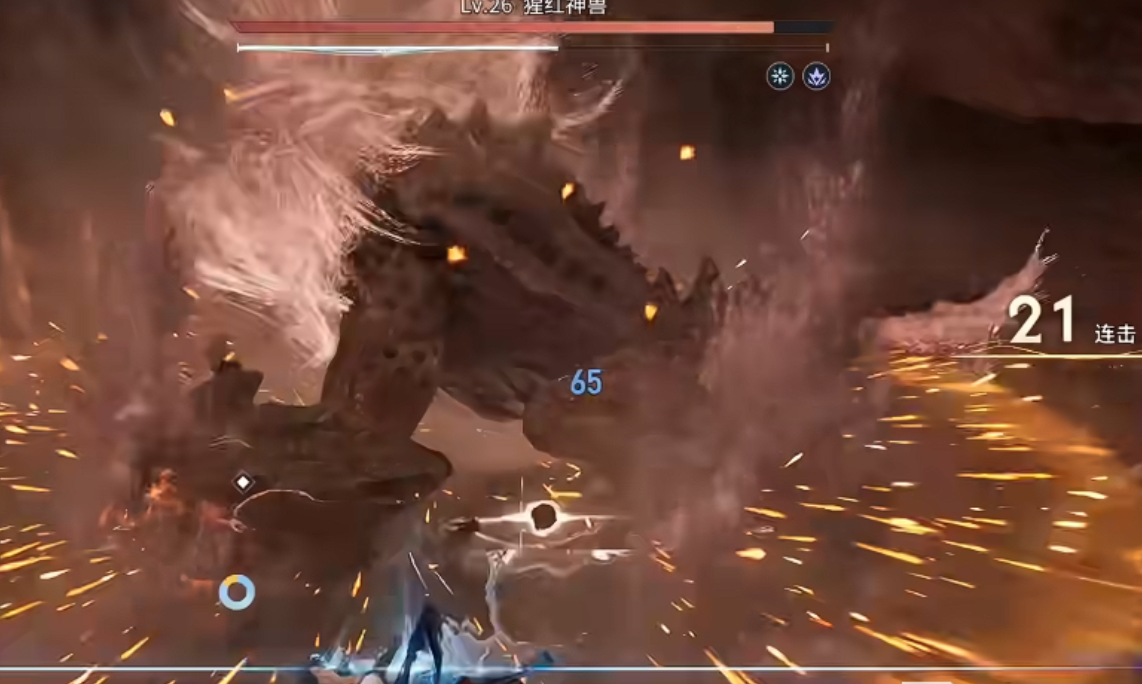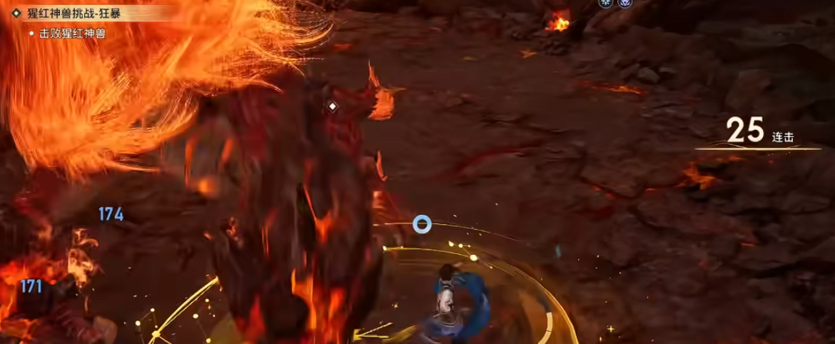 以隐藏Boss“猩红神兽”为例,其尾部存在固定破绽点,且每间隔12秒会释放一次全屏熔浆冲击。此时需预判其抬手动作,在技能起手瞬间使用“归尘”后撤,进入0.5秒无敌状态;待熔浆落地后立即接“逐星”突进至Boss背后,利用黄金印记刷新机制衔接普攻与“裂空斩”,形成稳定压制循环。该流程严格遵循12秒节奏节点,确保每次破绽窗口均被完整覆盖。